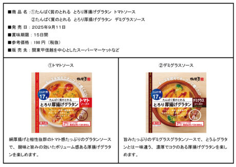 厚揚げメニューを広げる『厚揚げ惣菜シリーズ』 『炒めておいしい絹厚揚げ』『たんぱく質のとれる とろり厚揚げグラタン』 ひとり鍋初の具材入り商品 『たんぱく質のとれる肉厚油揚げ入り肉汁スンドゥブ』 2025年9月11日より発売のお知らせ