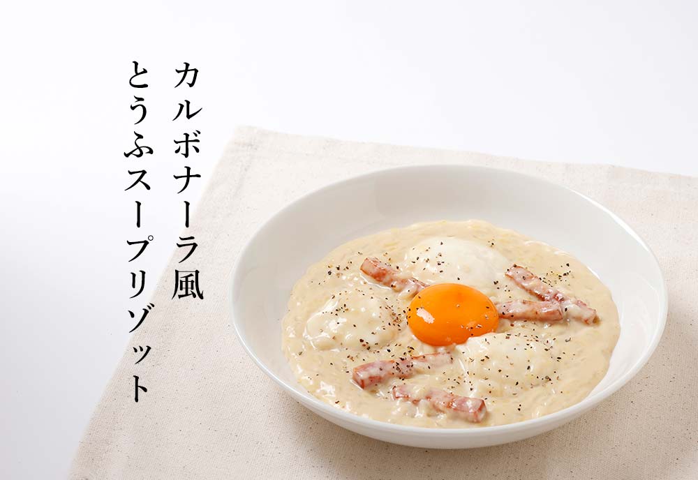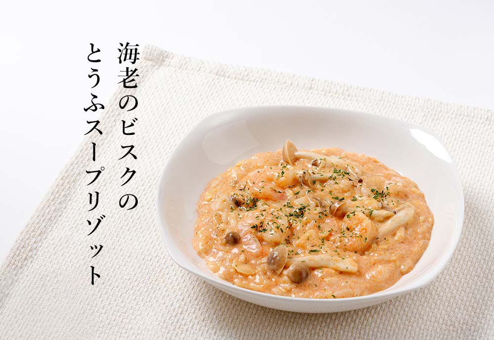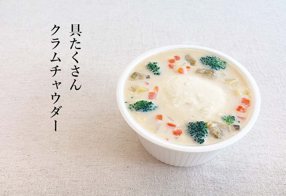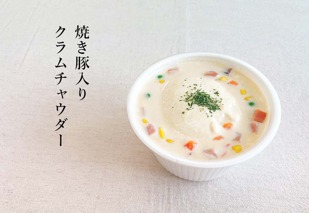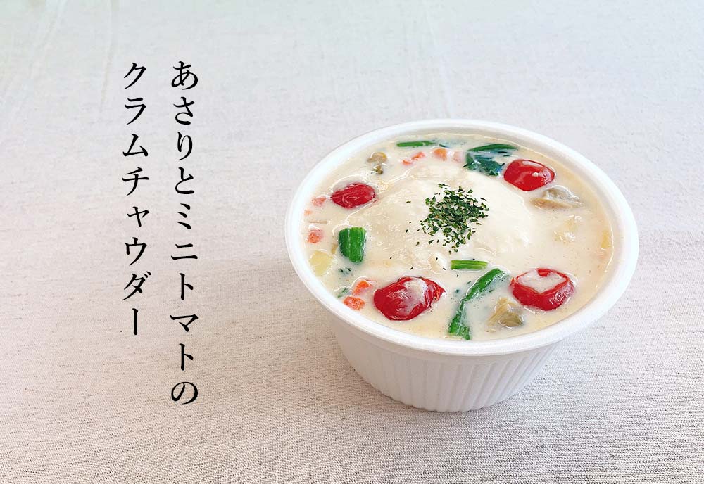スープ クラムチャウダー〜焼き豚のせ〜 具たくさんクラムチャウダー あさりとミニトマトのクラムチャウダー 海老のビスク〜生ハムのせ〜 えびとブロッコリーのビスク カルボナーラ風とうふスープリゾット 海老のビスクのとうふスープリゾット